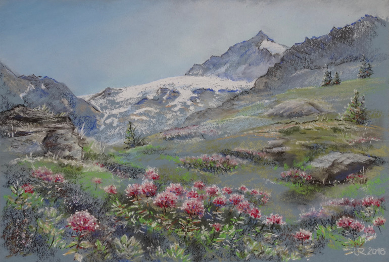 Blumenpracht und Gletscherfirn, 50 x 32 cm